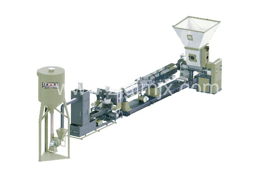 本機組由振動篩、高速混合機及冷卻機、塑料粉末加料機、錐形雙螺桿塑料擠出機,(單螺桿擠出機)機頭、雙壁波紋管成形機、塑料管擴口機、堆放架、冷水機、空氣壓縮機組成,......